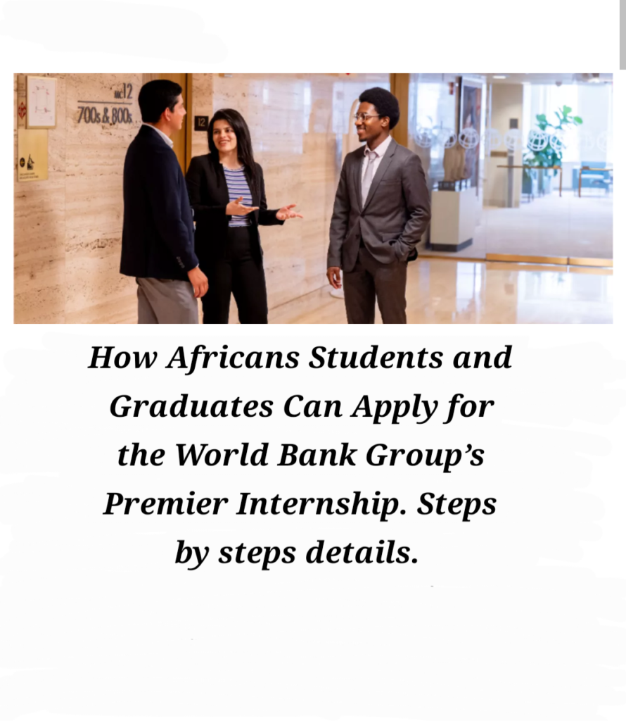 How Africans Students and Graduates Can Apply for the World Bank Group’s Premier Internship. In this Steps by steps details. I will detail what World Bank Group is, it’s mission and goals and now explain how you can apply to benefit from this opportunity